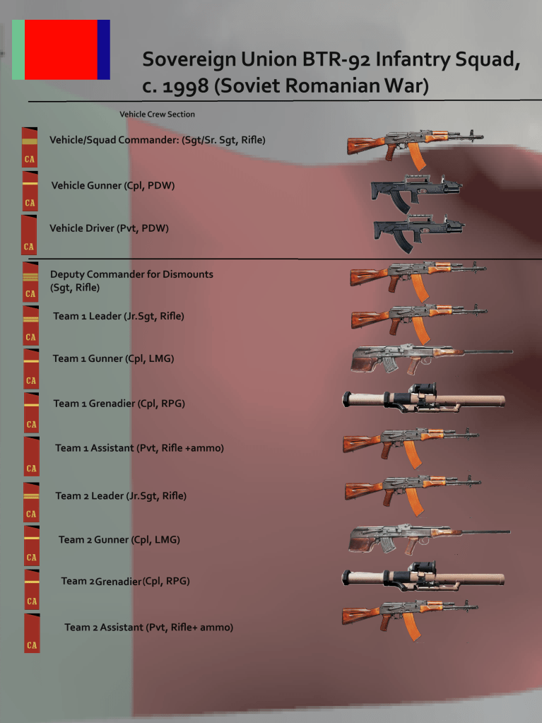 - T-84. The T-84 was chosen as the “low” tank in the high-low mix (ie T-64/80 and T-72 in real life). The real reason was as a bribe to the Ukrainian SSR where a potential situation was defused by All-Union President Yatchenko. Ukrainian firms would get preferential choices in procurement while Crimea was handed back over. T-84s were used in mobile corps and some high-category legacy divisions and had the most advanced suites of the “125mm classics.”