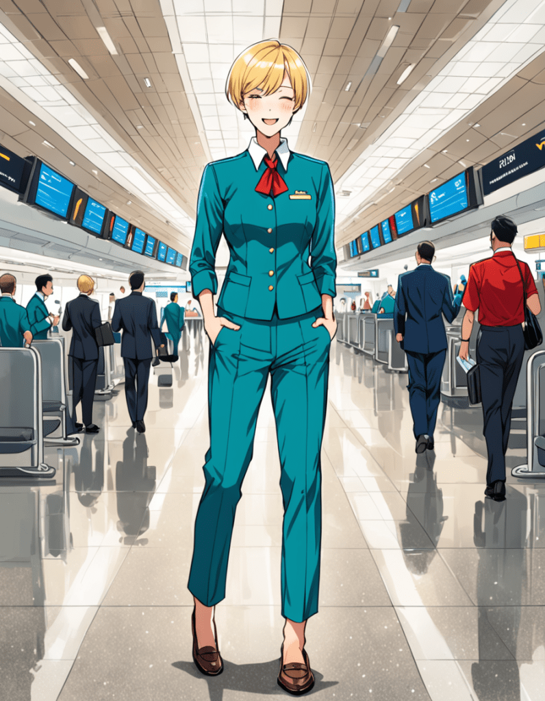 Asialink flight attendant uniforms are the same combination of teal and/or light green with red neckwear.