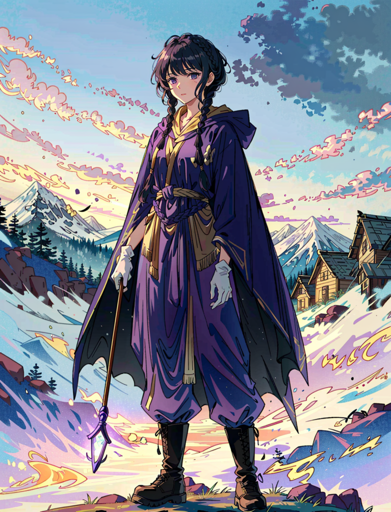 The protagonist of the Noita game, known as “Mina” (which essentially just means ‘you’ in Finnish), or “The Noita” (witch) is a deliberately ambiguous figure wearing covering purple robes. So I felt I needed to do a theoretical unmasked version in Stable Diffusion. This “Mina” is female, with hair in traditional Scandinavian braids.